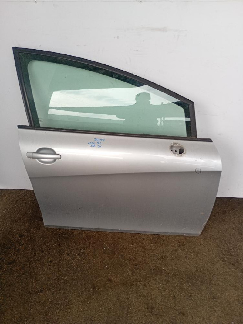 Porta / Portiera Anteriore Destra Seat Leon, di colore Argento, presenta una fitta, compresa di maniglia, 5 porte.